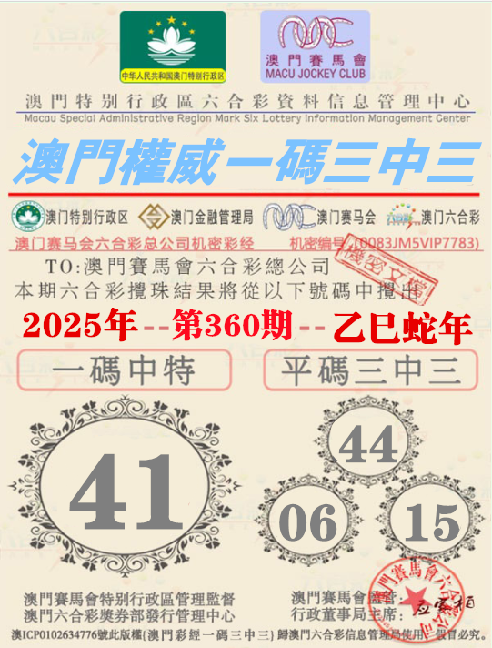360期:【澳门权威资料】√一码三中三√ 澳门权威精准资料