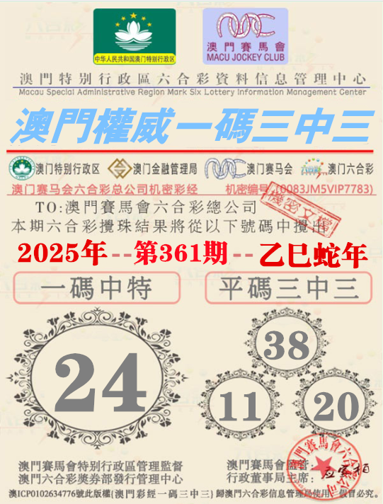 361期:【澳门权威资料】√一码三中三√ 澳门权威精准资料